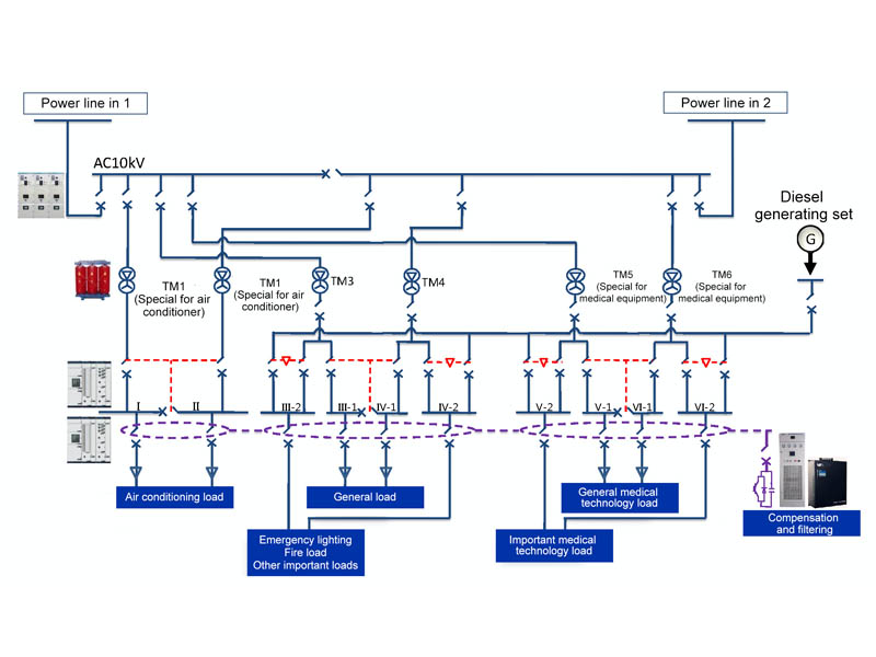 Решение для больничной системы распределения электроэнергии Zhegui Electric сочетает в себе классификацию нагрузки больницы, систему электроснабжения, систему аварийного электроснабжения, систему освещения и специальные медицинские места с учетом требований к качеству электроэнергии, чтобы обеспечить полную, высокую надежность и высокую безопасность системы распределения электроэнергии больницы. . Решения для систем распределения электроэнергии.
