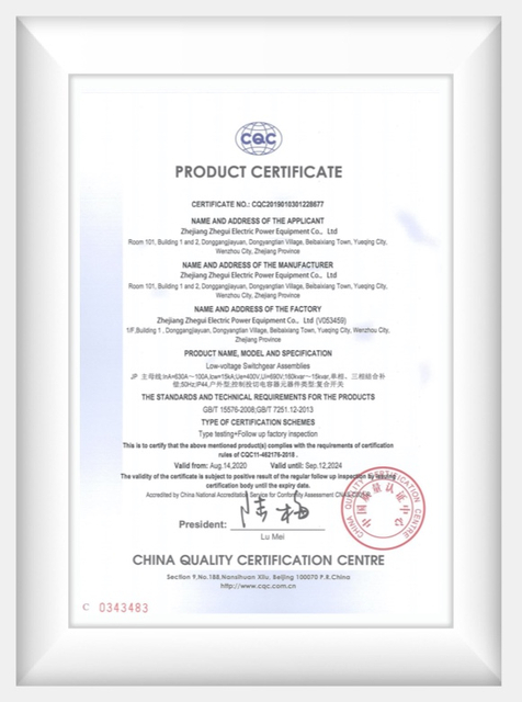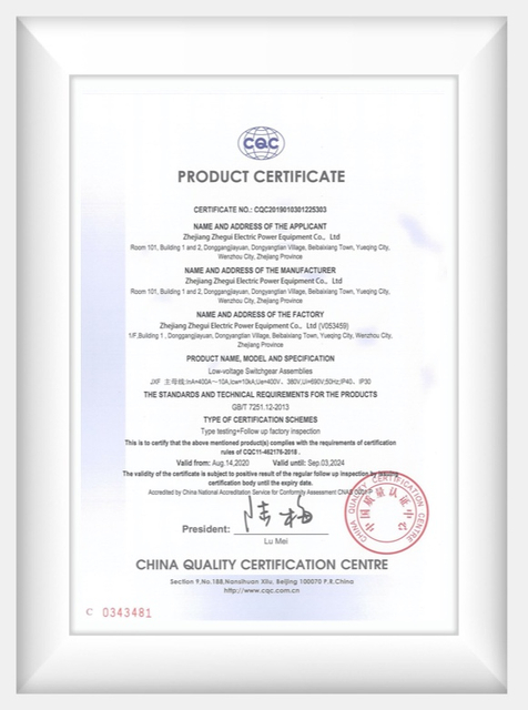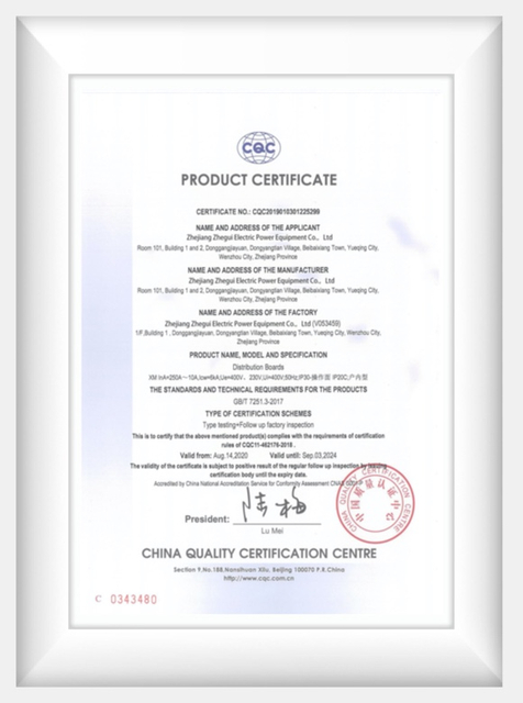 Electric Zhegui обеспечивает полные решения для распределения электроэнергии и сертификационных знаков. Эти знаки принимаются электрическими компаниями, инспекторами и властями по всему миру, позволяющие производителям быстро и эффективно выходить на мировой рынок.